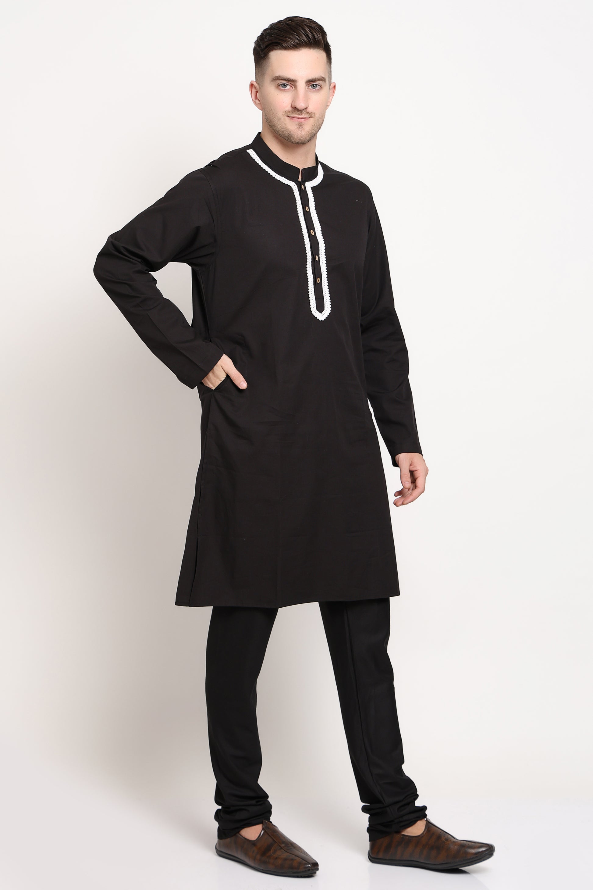 Crafted in soft, breathable fabric, it features intricate detailing around the neckline and placket, adding subtle sophistication